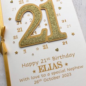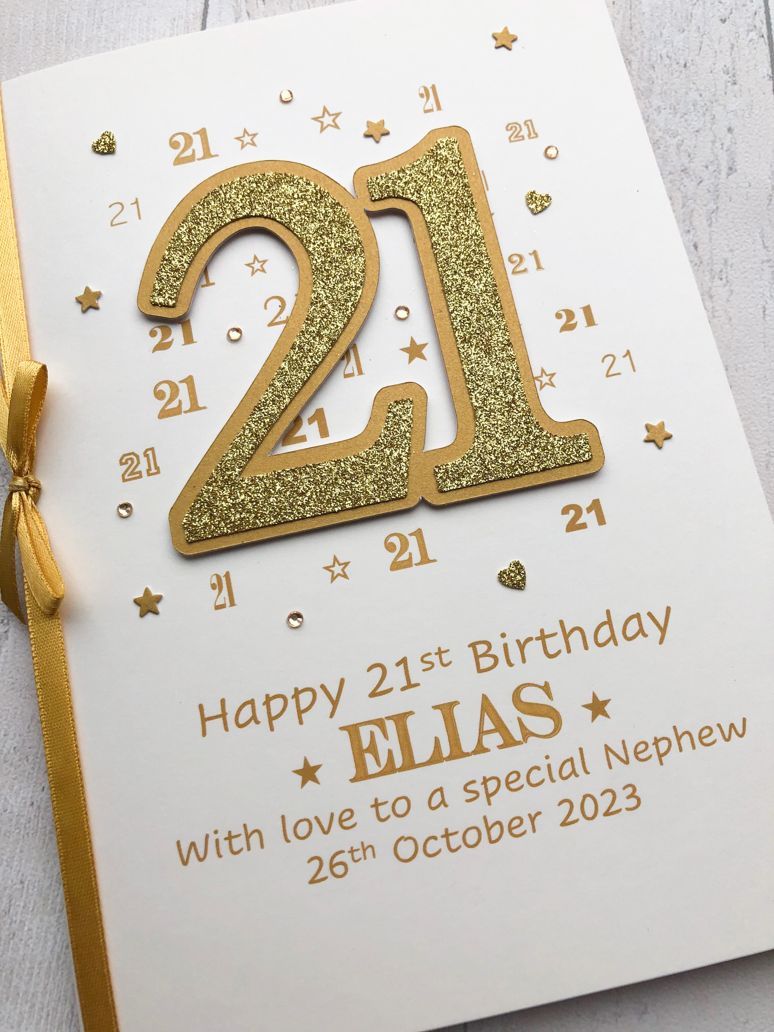 Handmade card for men featuring any large cut out 3d number set on a background of mini printed numbers. You can personalise with any printed wording, any number and have the design made in any colour.